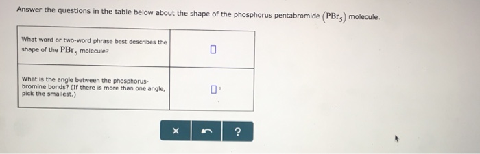 Solved Answer The Questions In The Table Below About The Shape Of The Phosphorus Pentabromide Pbr 5 Molecule What Word Or Two Word Phrase Best Describes The Shape Of The Pbr 5 Molecule What